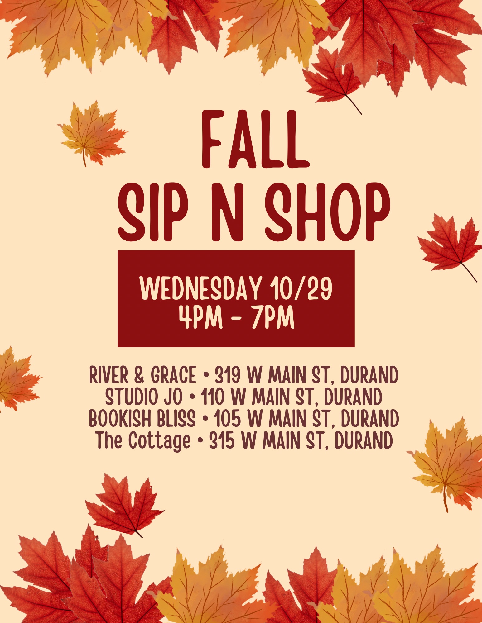Fall Sip N Shop ย ๐๐ฎ๐น๐น ๐ฆ๐ถ๐ฝ ๐ก ๐ฆ๐ต๐ผ๐ฝ ๐ผ๐ป ๐ ๐ฎ๐ถ๐ป ๐ฆ๐๐ฟ๐ฒ๐ฒ๐!ย Join ๐ฅ๐ถ๐๐ฒ๐ฟ + Add to Google Calendar + iCal / Outlook export 00 days 00 hours 00 minutes 00 seconds Date Oct 29 2025 Time 4:00 pm - 7:00 pm Location River & Grace 319 W Main St, Durand, WI 54736 Category Community Durand Shopping Share this event Events Dine Bar & Grill Deli & Fast Food Desserts & Sweets Restaurants & Cafรฉs Local Waters Stay Bed & Breakfast Camping Vacation Rentals Motels Visit Art Farmerโs Market & Agritourism Things to Do Museums Snowmobile Trails Craft Beverages Shopping Outdoors Search for: Powered by Modern Events Calendar